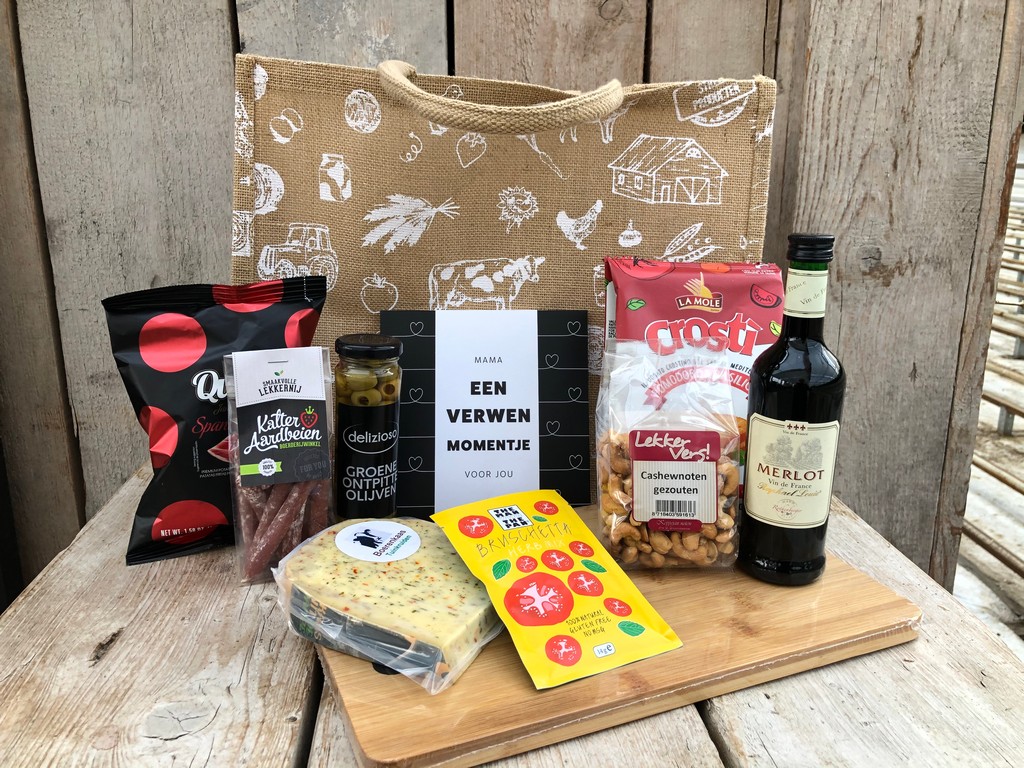 De shopper is gevuld met lekkernijen voor een goede borrel.