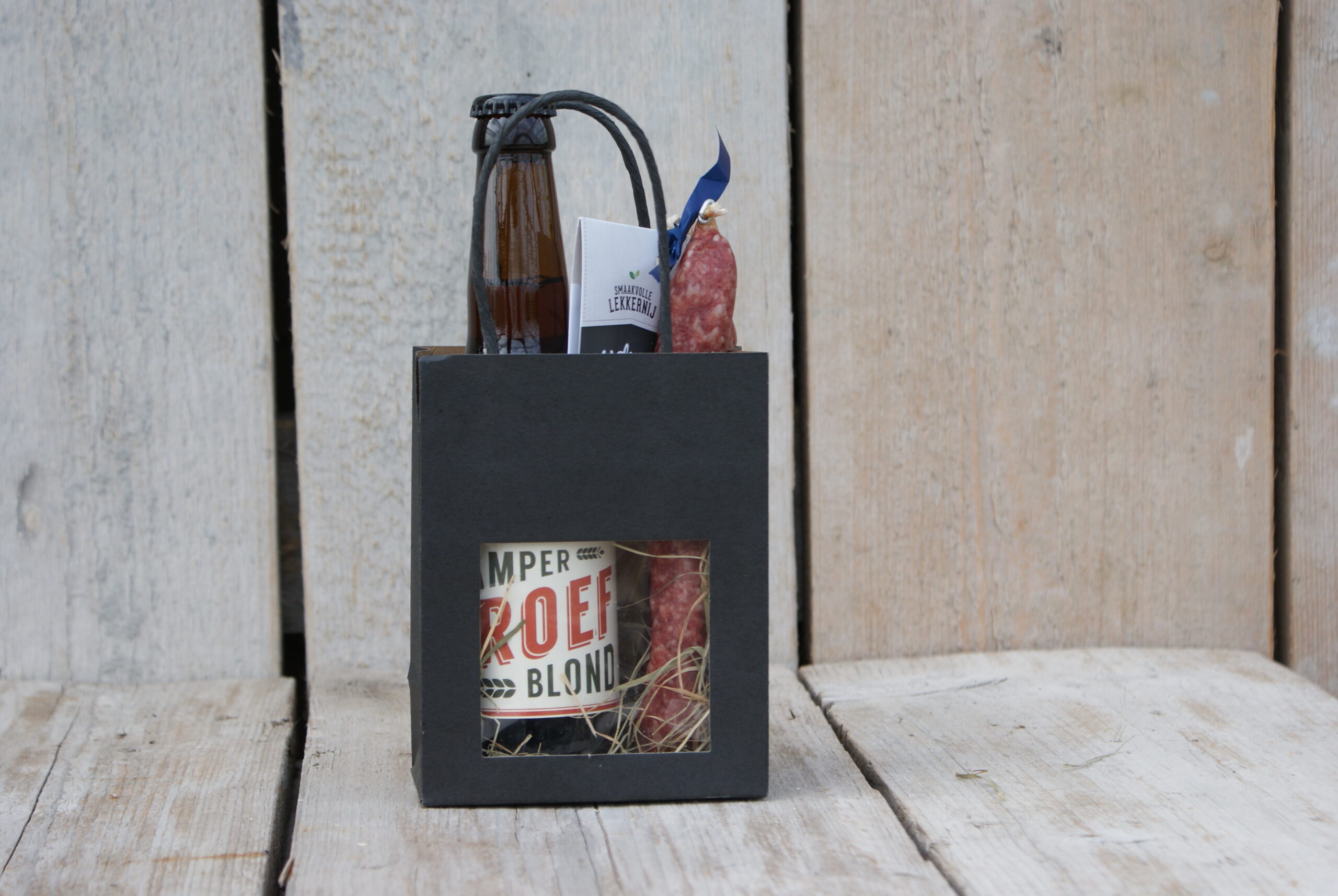 Tasje vol met een lekker biertje en worst