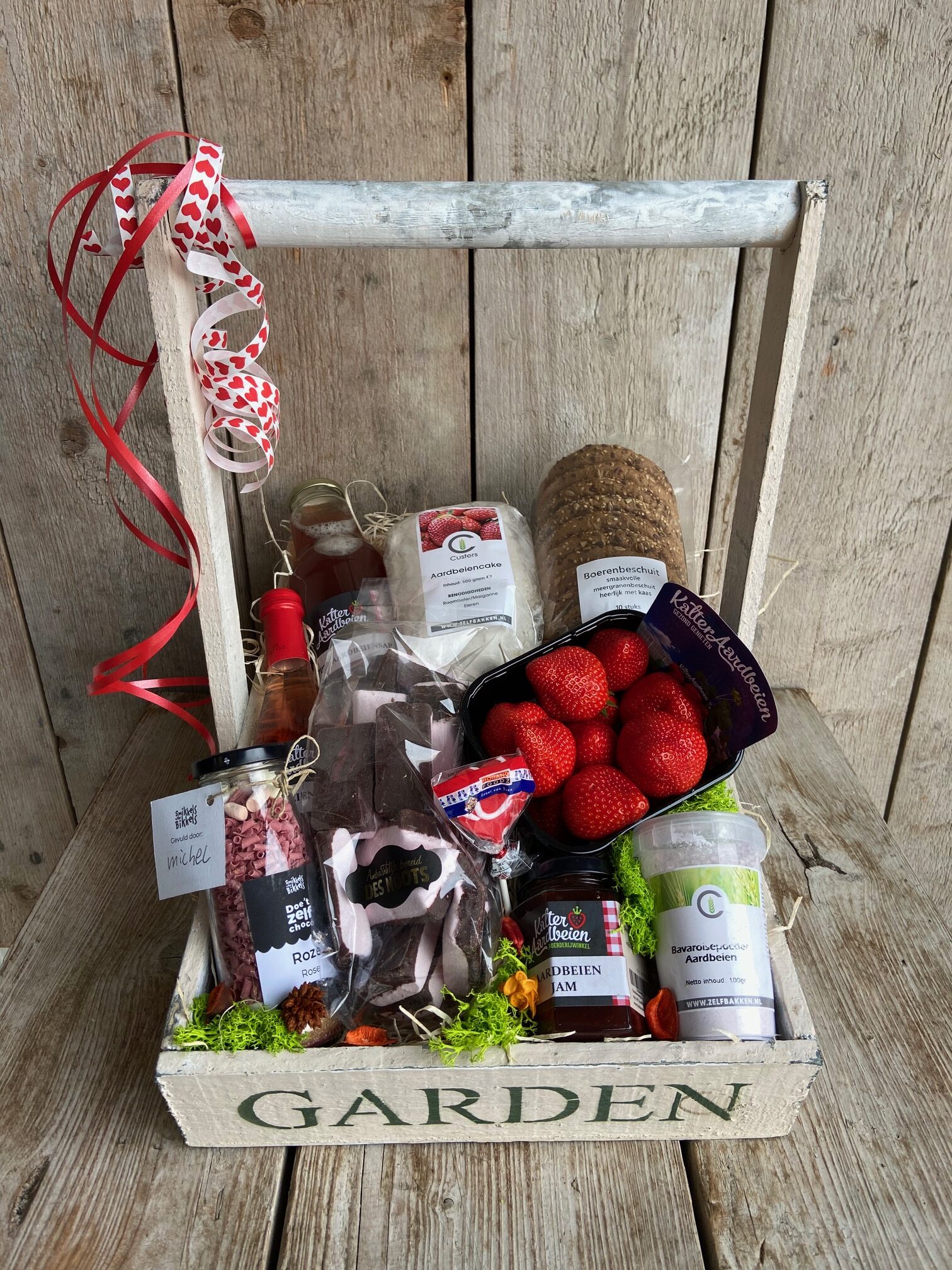 Dit pakket is alleen lokaal te bestellen, omdat er verse aardbeien in zitten. Mocht u dit pakket toch graag via de post willen verzenden, doe dan even bericht. Dan kunnen we de aardbeien vervangen voor een ander product!