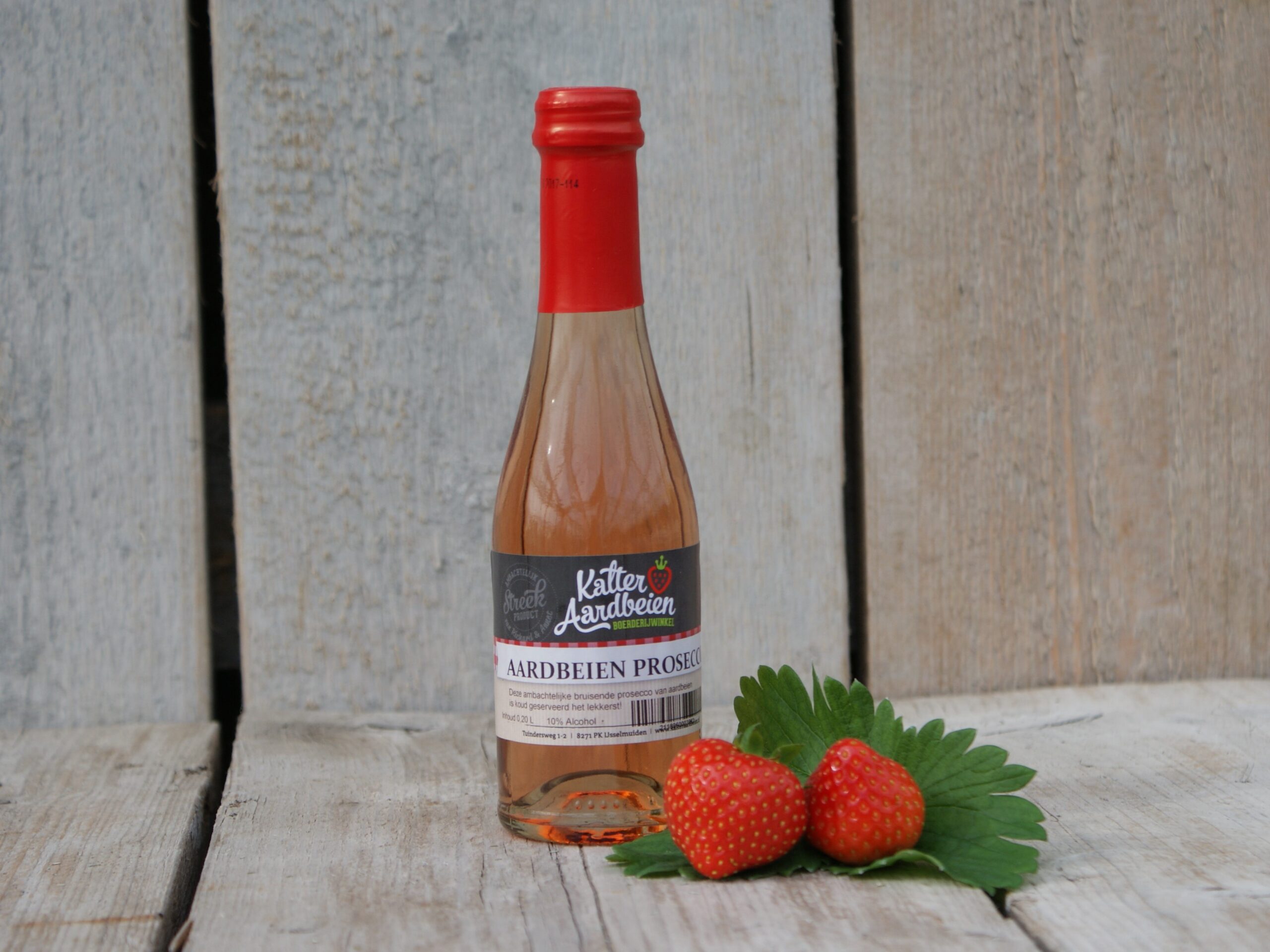 Een lekker klein flesje aardbeiensecco, pure verwennerij in een flesje!
