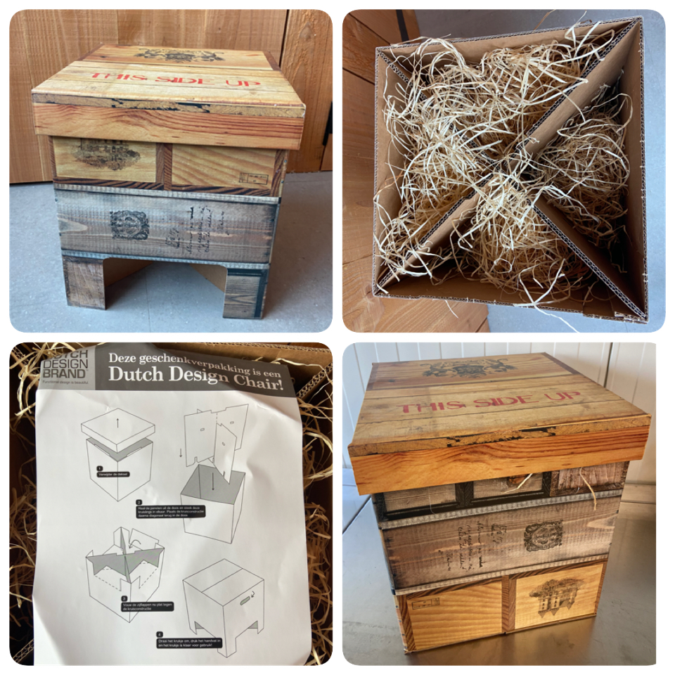 De box is (leeg) te gebruiken als bijzettafeltje of krukje, hoe leuk is dat?!