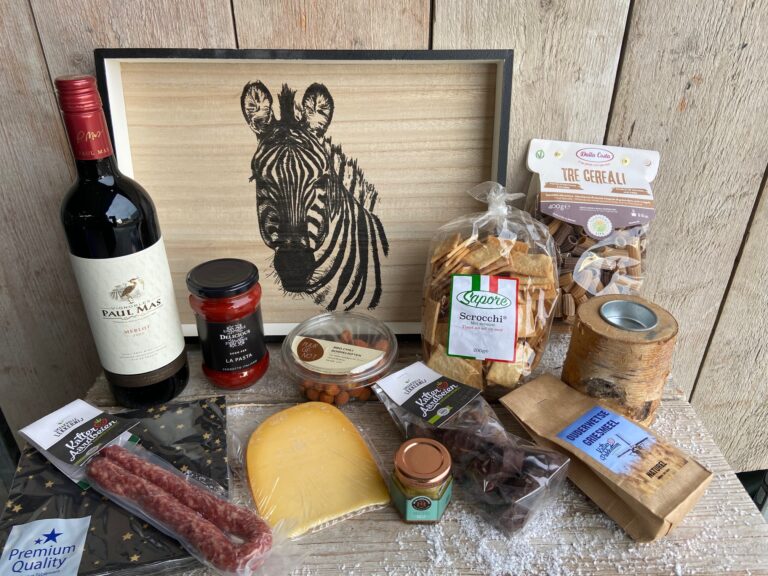 Dit mooie dienblad met de afbeelding van een zebra is op zich al geweldig, maar gevuld met de lekkerste producten kan de kerst niet meer stuk!
