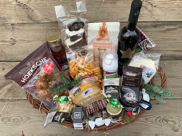 Dit luxe kerstpakket is gevuld met heerlijke producten.