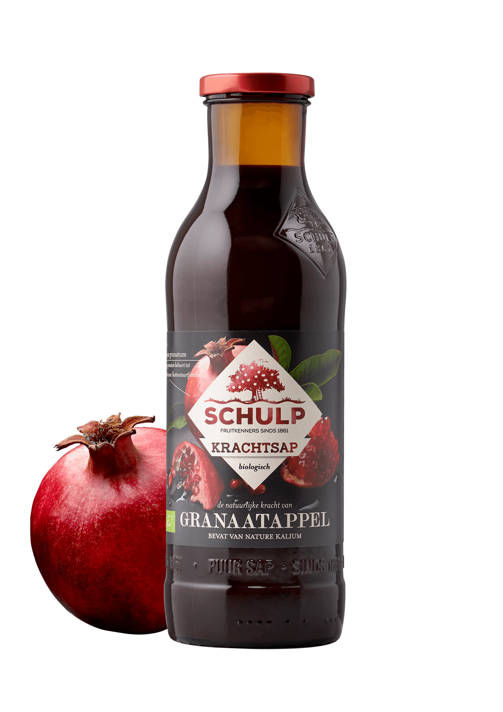 Granaatappels behoren tot de oudste fruitsoorten van de wereld en zijn oorspronkelijk afkomstig uit het voormalig Perzië. Zongerijpte granaatappels worden in land van herkomst geperst en bij Schulp verder verwerkt en gebotteld. Granaatappels bevatten polyfenolen, tannines en anthocyanines. Hierdoor staan granaatappels bekend als een krachtige, natuurlijke antioxidant. Bij een dagelijkse consumptie van 100-200 ml profiteer je het best van dit effect.